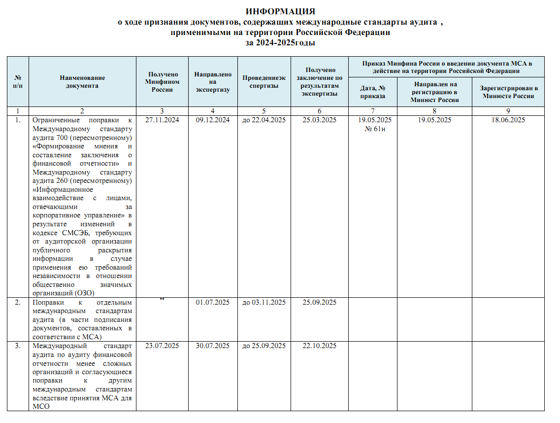 ИНФОРМАЦИЯ о ходе признания документов, содержащих международные стандарты аудита