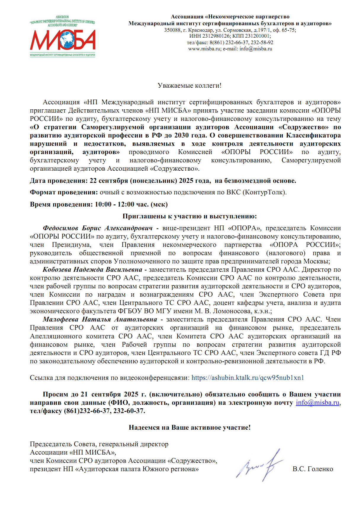 22 сентября 2025 года Заседание комиссии «ОПОРЫ РОССИИ» по аудиту, бухгалтерскому учету и налогово-финансовому консультированию