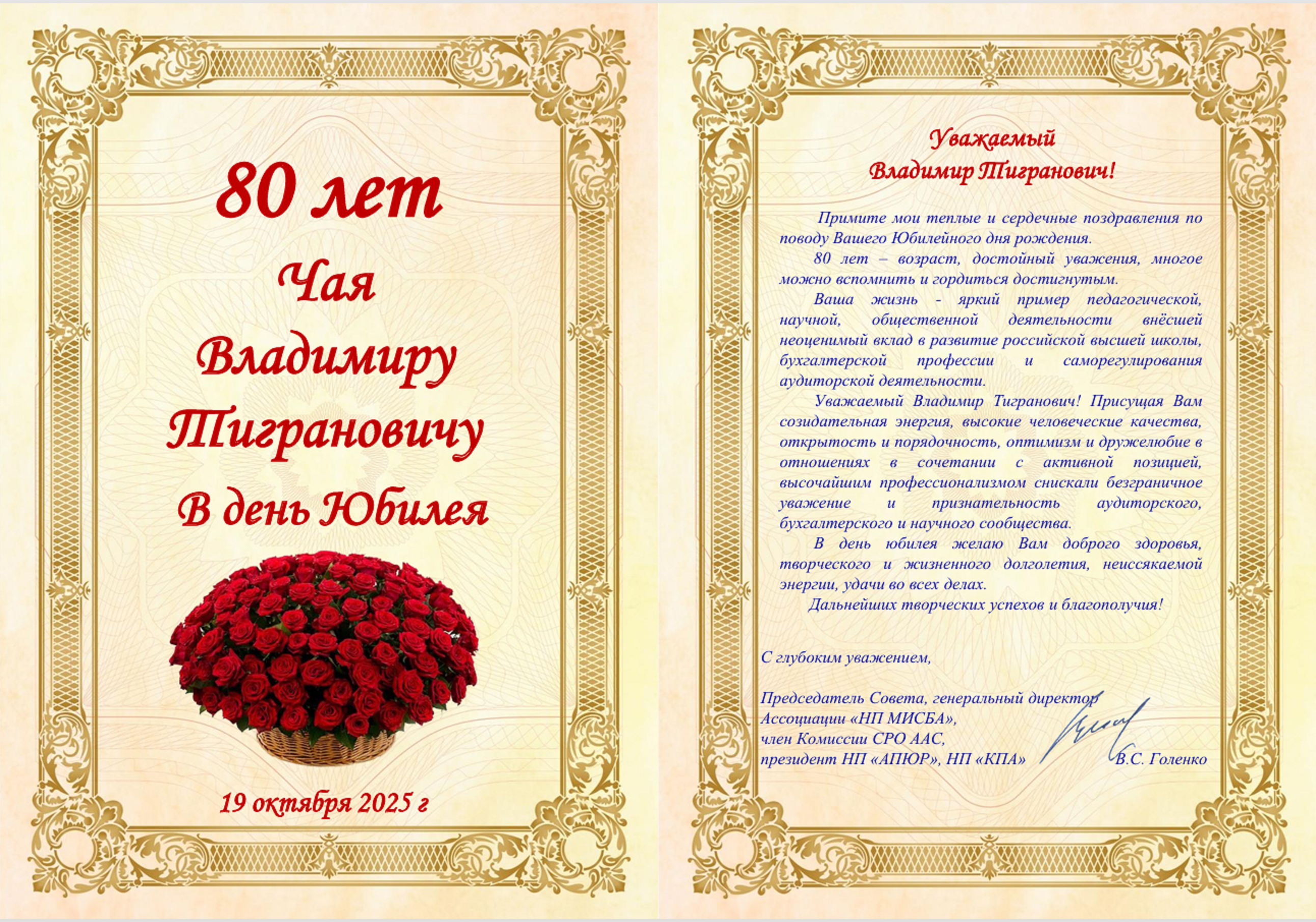 Поздравляем с 80-летием Чая Владимира Тиграновича