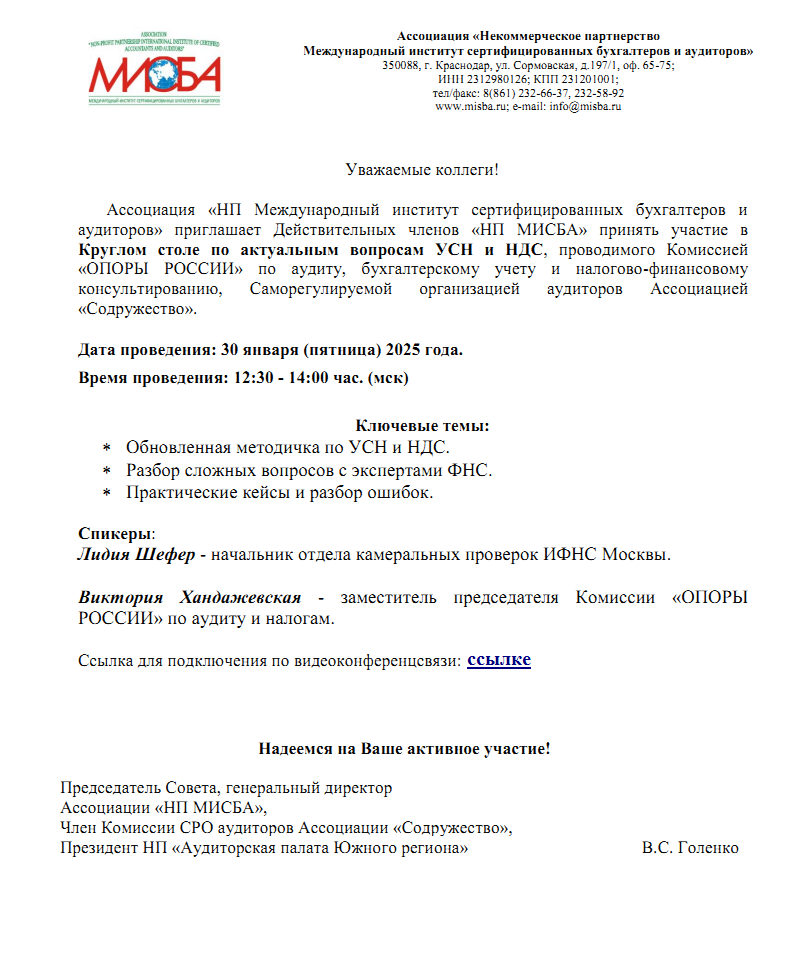 МИСБА | Новости | 30 января 2026 года Кругый стол