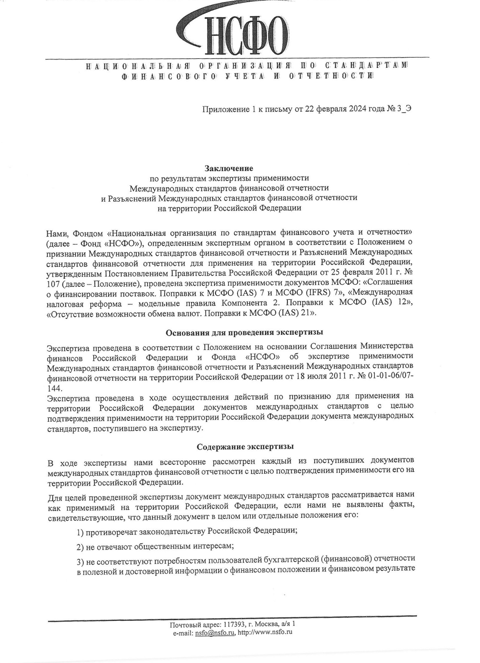 Заключение по результатам экспертизы применимости Международных стандартов финансовой отчетности