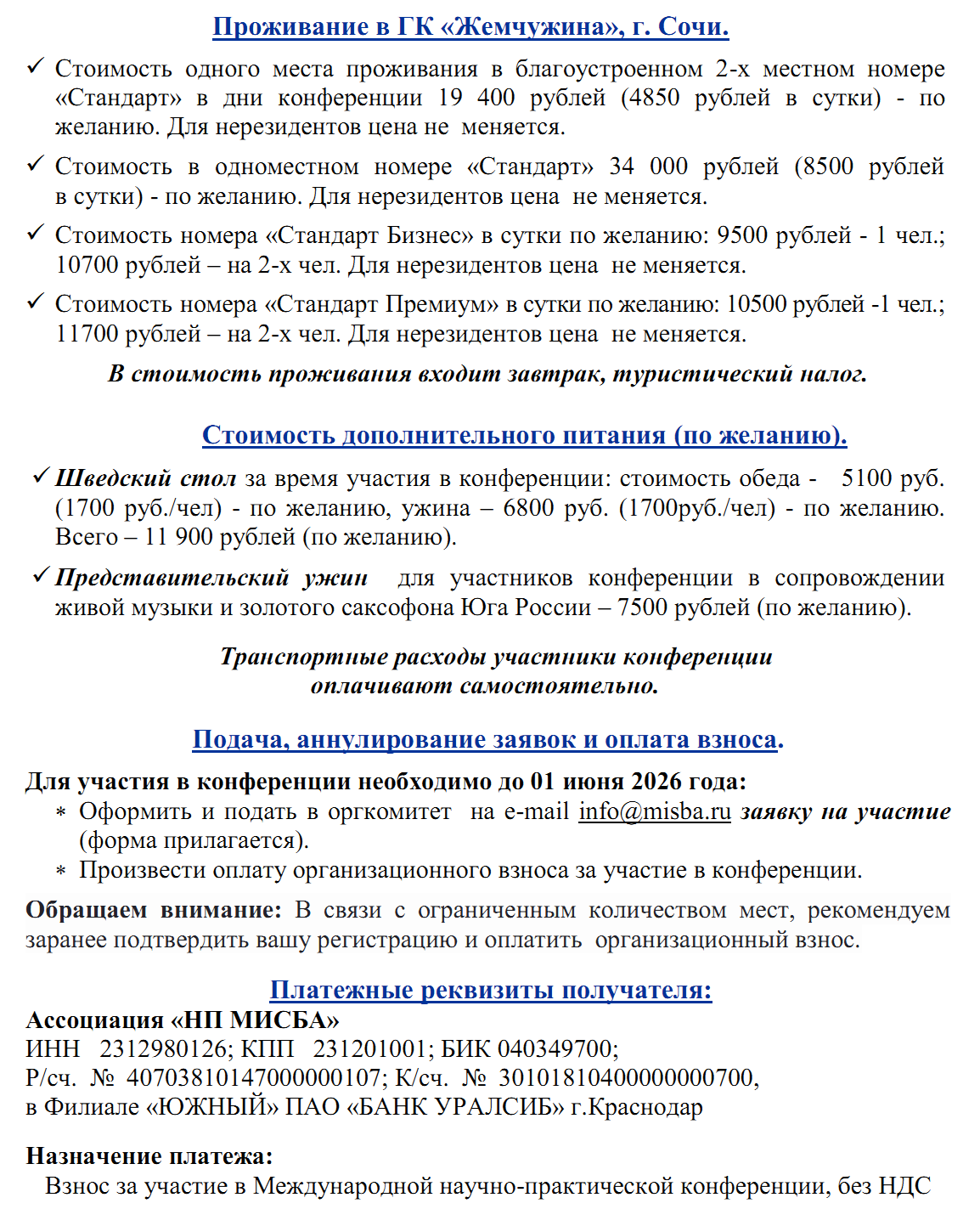 09-13 октября 2026 года XXVI МЕЖДУНАРОДНАЯ НАУЧНО-ПРАКТИЧЕСКАЯ КОНФЕРЕНЦИЯ, г.Сочи